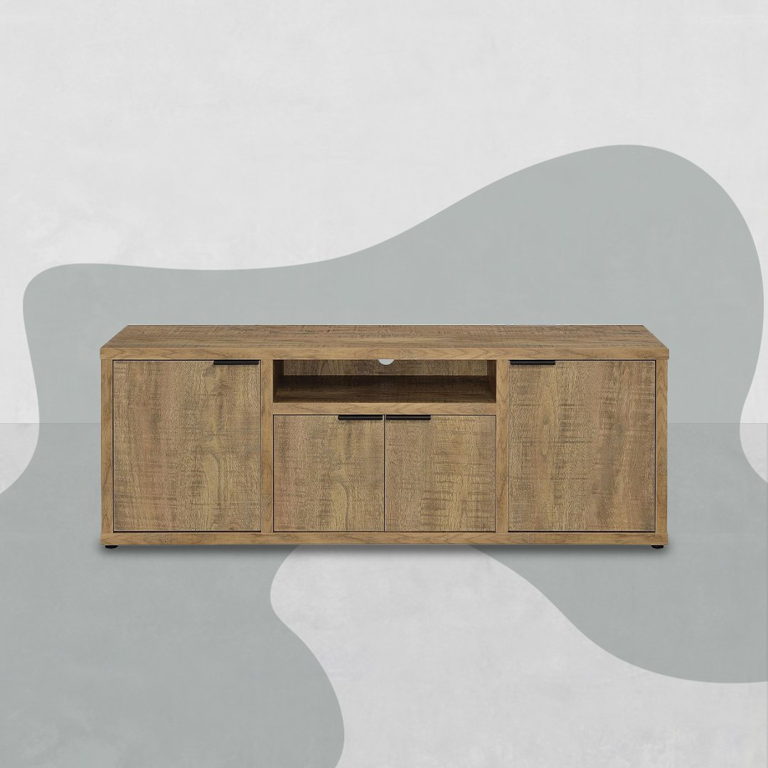 This TV cabinet combines practicality and style, enhancing any living or entertainment space with its thoughtful design. Featuring a mix of enclosed cabinets and a central open shelf, it offers organized storage for media devices, accessories, and everyday essentials, helping keep your area tidy and clutter-free. Crafted for durability and stability, it provides a reliable foundation for your television while adding a touch of rustic elegance to your décor. Fully customizable, this cabinet allows you to adjust the size, layout, and Formica color options, creating a piece that perfectly suits your home’s style and functional needs.