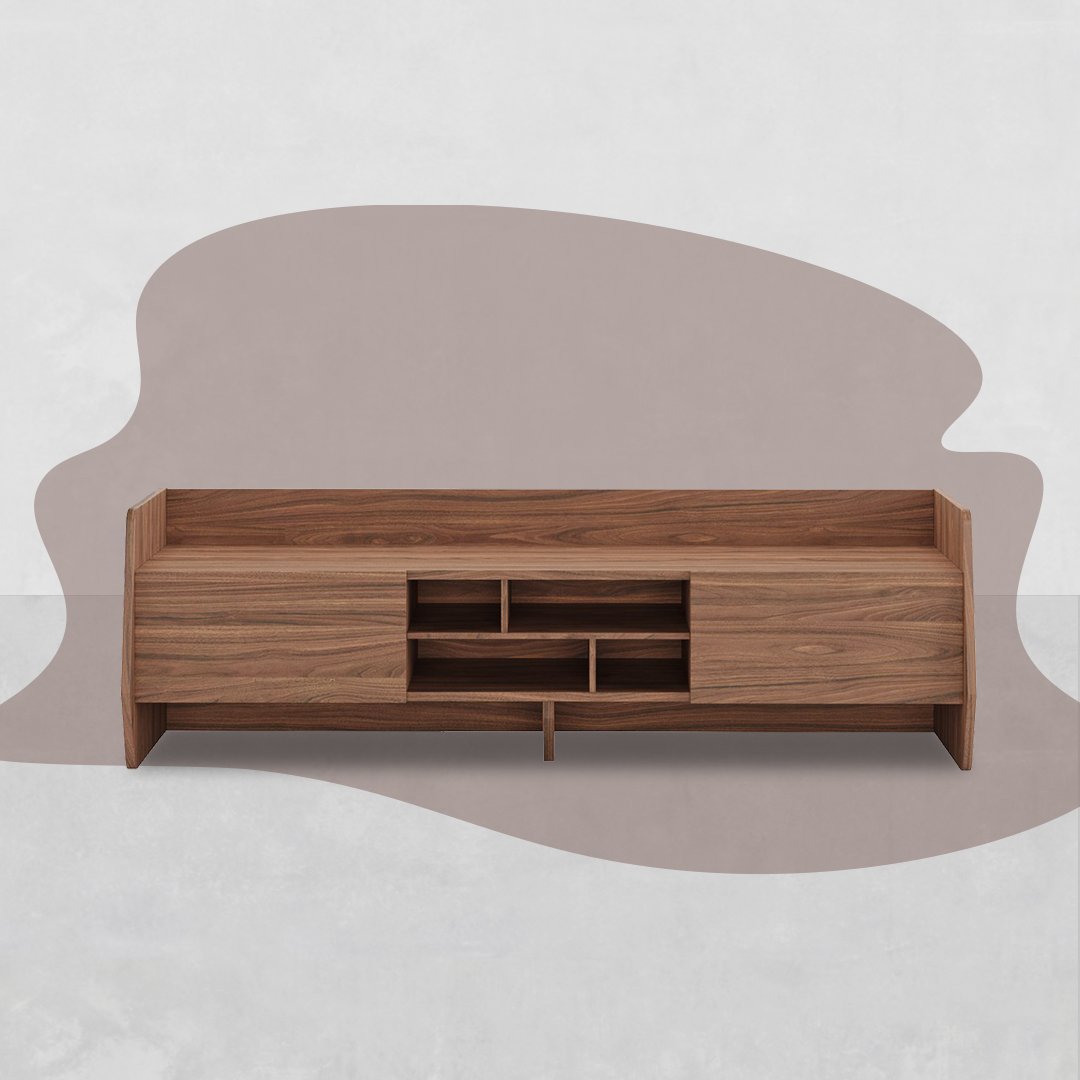 Bring a touch of refined charm to your home with this elegant walnut-inspired TV cabinet, designed with a clean and modern look that blends beautifully into both contemporary and classic interiors. Its smooth finish and simple shape create a warm, inviting presence, while the open center shelf offers easy access to your media devices. The side compartments feature a handle-free opening system with a gentle closing mechanism, making daily use effortless and quiet. Supported by strong wooden legs, this cabinet combines style, practicality, and long-lasting quality. It is also a fully customized product, allowing you to personalize the size, design, and Formica color to suit your space and preferences, ensuring a perfect fit for any home.